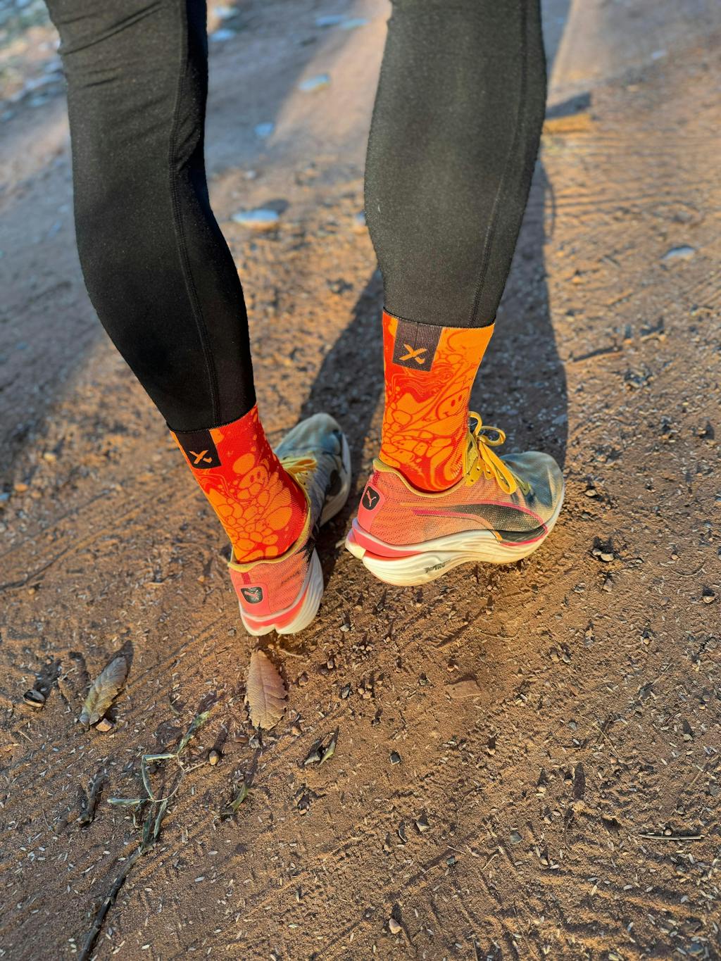 Neon Slide Orange fuses solar orange and radioactive red into a potent design that’s impossible to ignore. With a playful twist of smiley swirls and blister-free tech, these socks are made for those who bring fire to the finish line.