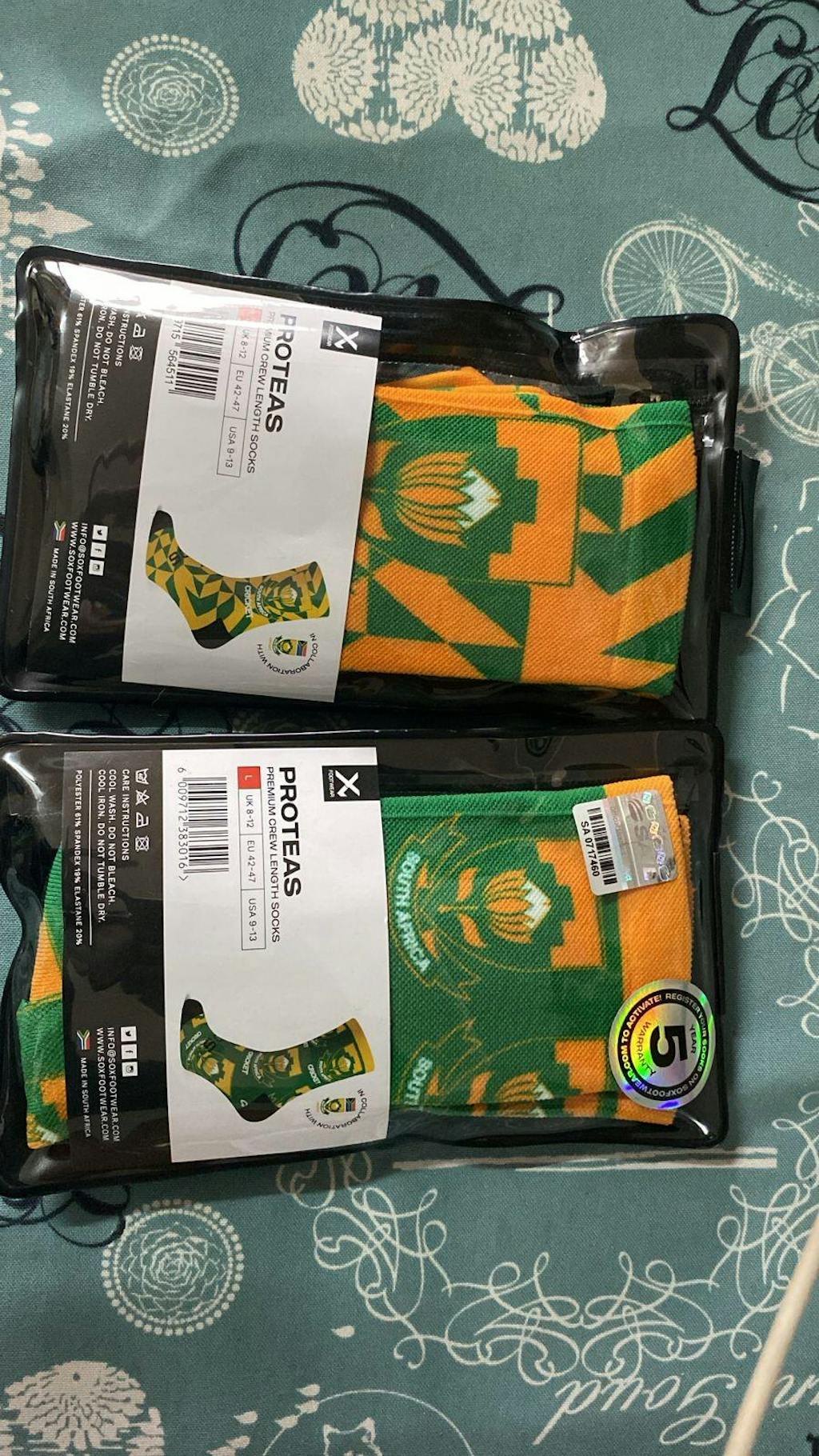 Step up your fan game with the officially licensed Proteas Cricket Logo Crew Socks. The design features a lively pattern of the iconic Protea emblem. These socks are perfect for showing support for South Africa in a stylish and comfortable way. Let your feet do the cheering, on and off the field. #BePartOfIt